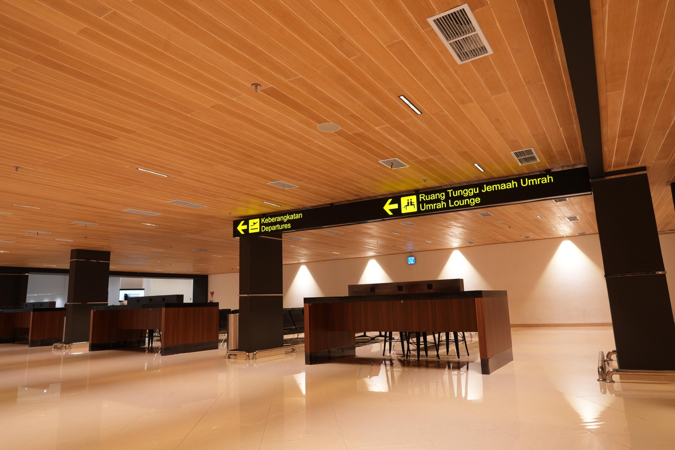 Untuk mendukung layanan tersebut, disiapkan 10 konter khusus di area steril terminal. Seluruh alur pelayanan dirancang secara sistematis, mulai dari kedatangan jemaah di bandara, penempatan berdasarkan kloter, proses pemeriksaan dokumen, hingga keberangkatan menuju pesawat. Pengaturan ini dilakukan untuk menjaga ketertiban dan kenyamanan selama proses keberangkatan.