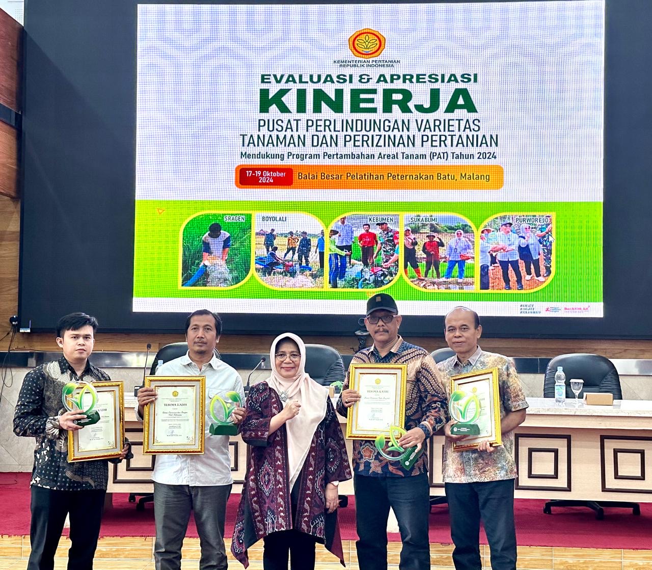 Plt. Sekretaris Jenderal Kementerian Pertanian, Ali Jamil mengatakan bahwa penghargaan ini merupakan bentuk rasa syukur atas capaian PAT di 5 Kabupaten yang cukup memuaskan. Diketahui, rata-rata capaian di sana sudah 100 persen. “Terima kasih Ibu Kapus PVTPP (Leli Nuryati) yang sudah bekerja keras mengejar target PAT di 5 Kabupaten ini. Mudah-mudahan dengan pertumbuhan ini bisa memberi semangat lagi agar ke depan kita semua bisa melaksanakan tugas ini dengan baik sesuai penugasan dari Bapak Menteri (Amran Sulaiman) kepada kami semua,” ujar Ali Jamil, Jumat, 18 Oktober 2024.