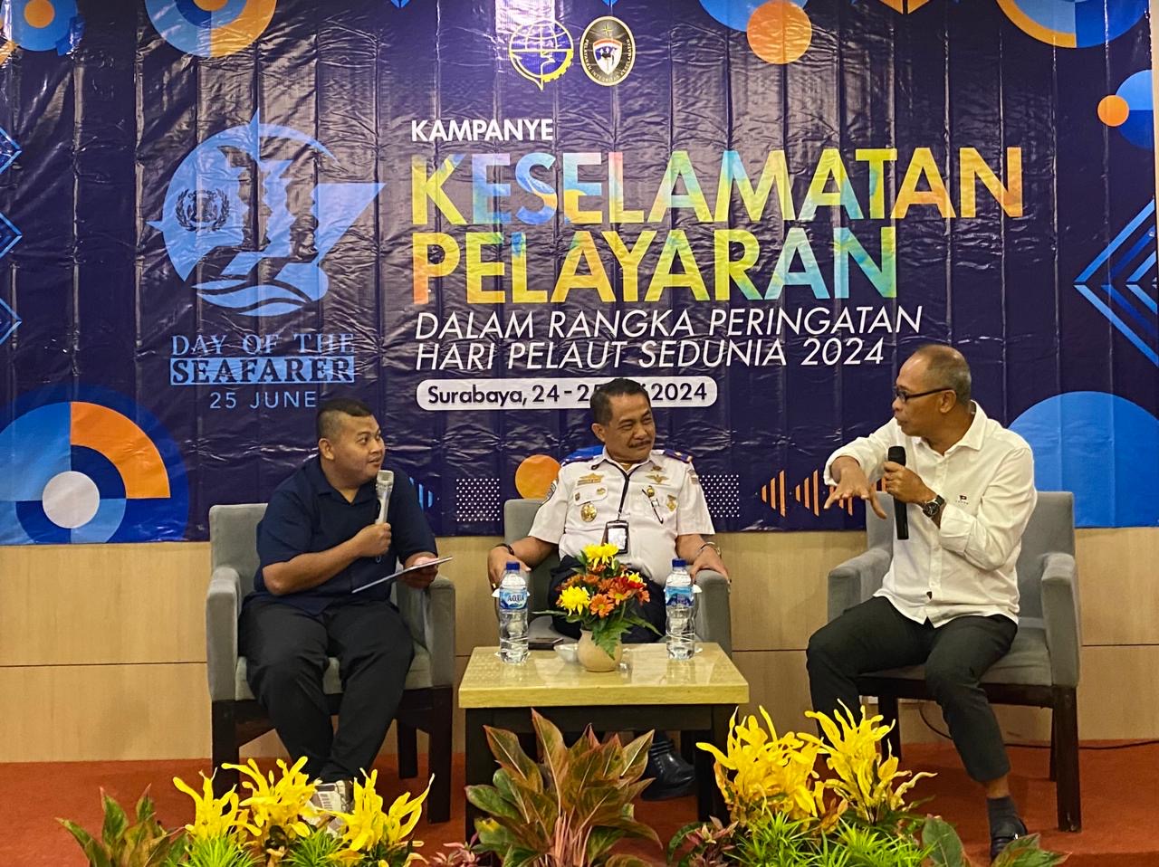 Hadir pula sebagai nara sumber Kepala Kantor KSOP Utama Tanjung Perak Agustinus Maun. Diskusi digelar berkaitan dengan peringatan Hari Pelaut Sedunia Tahun 2024 dimana International Maritime Organization (IMO) mengusung tema Safety Tips At Sea dan Sub tema Healthy and Happy Seafarers for Safeships.