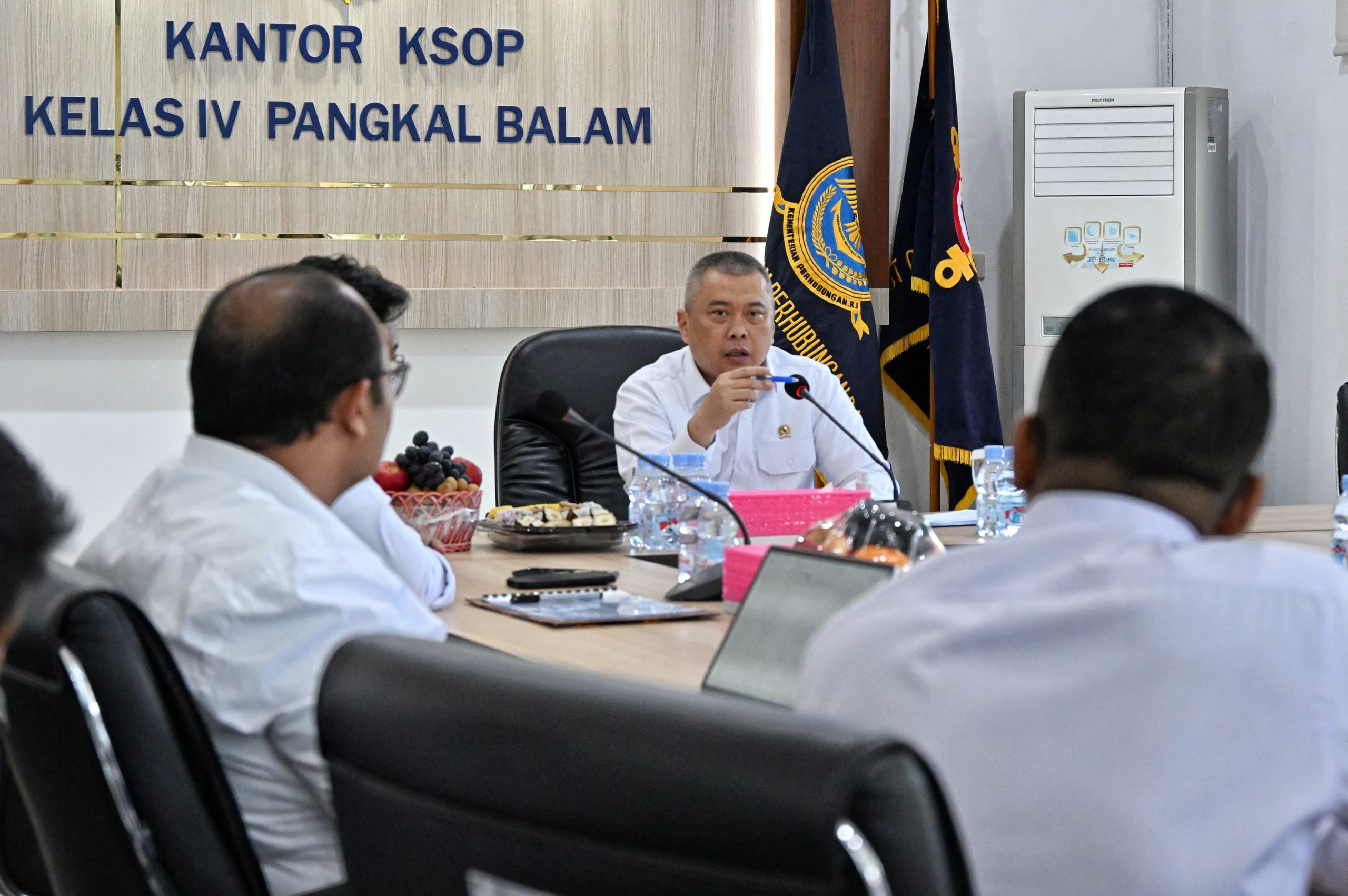 Menhub Dudy melanjutkan kunjungan kerjanya dengan meninjau Kantor Kesyahbandaran dan Otoritas Pelabuhan Kelas IV Pangkalbalam, yang memiliki tiga wilayah kerja yaitu Belinyu, Sungai Liat, serta Sungai Selan.