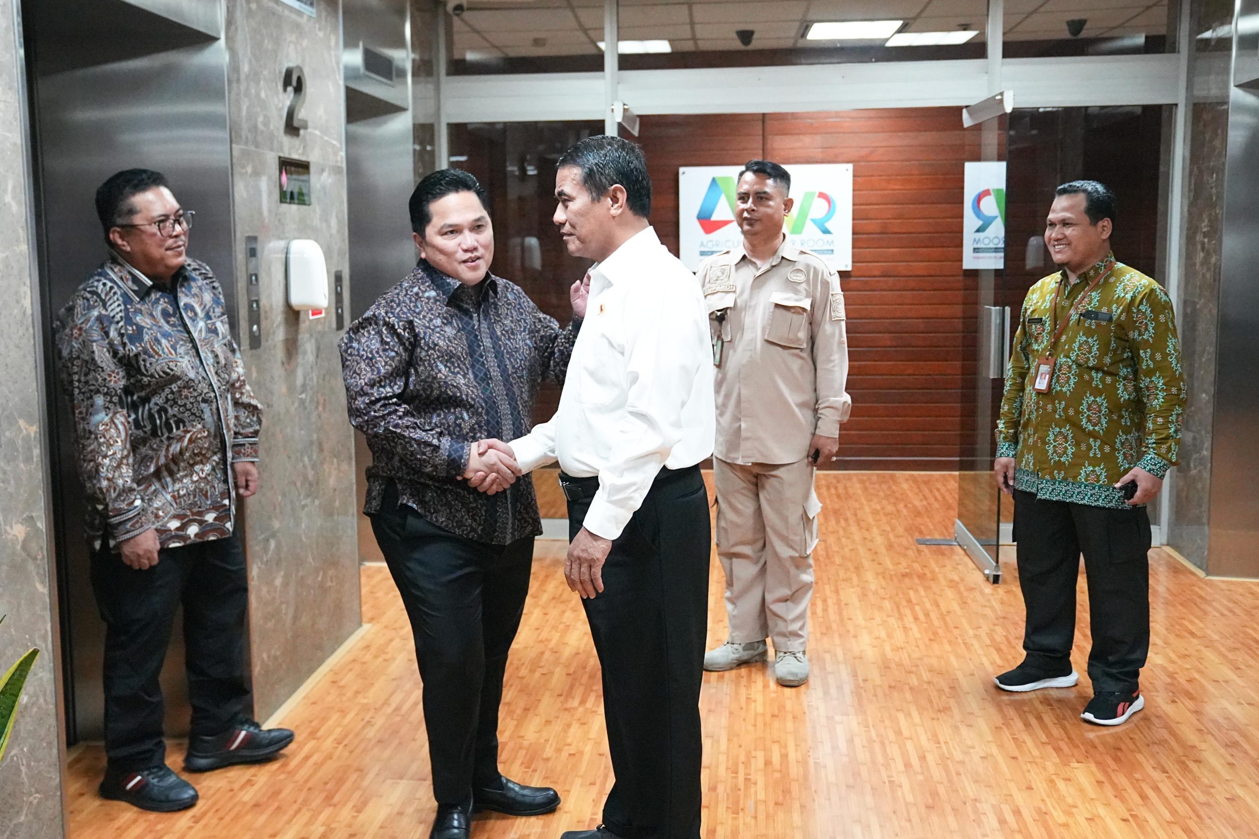 Menteri BUMN Erick Thohir mengungkapkan siap mendukung Kementerian Pertanian. Kata Erick, ke depan akan terus dilakukan koordinasi untuk memastikan Badan Usaha Milik Negara berjalan sesuai tupoksinya dalam mendukung kinerja Kementerian Pertanian. “Kita punya kesepakatan penuh mendukung program Bapak Presiden, Bapak Prabowo, yang melalui tentu Pak Mentan Amran untuk kita menyinergikan seluruh kebijakan yang memang diperlukan,” ungkapnya.
