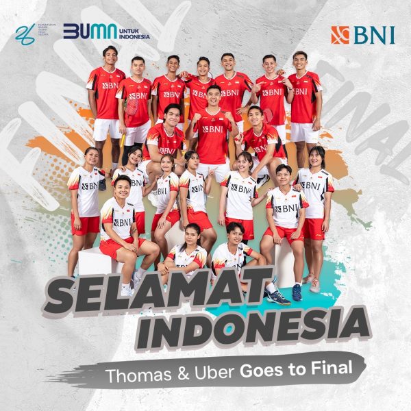 Media Social ShareJAKARTA, BISNISJAKARTA.ID – PT Bank Negara Indonesia (BNI) mengucapkan selamat dan menyampaikan apresiasi setinggi-tingginya atas keberhasilan Tim Thomas dan Uber Indonesia melaju ke babak final Kejuaraan Bulu Tangkis Beregu Thomas & Uber Cup…
