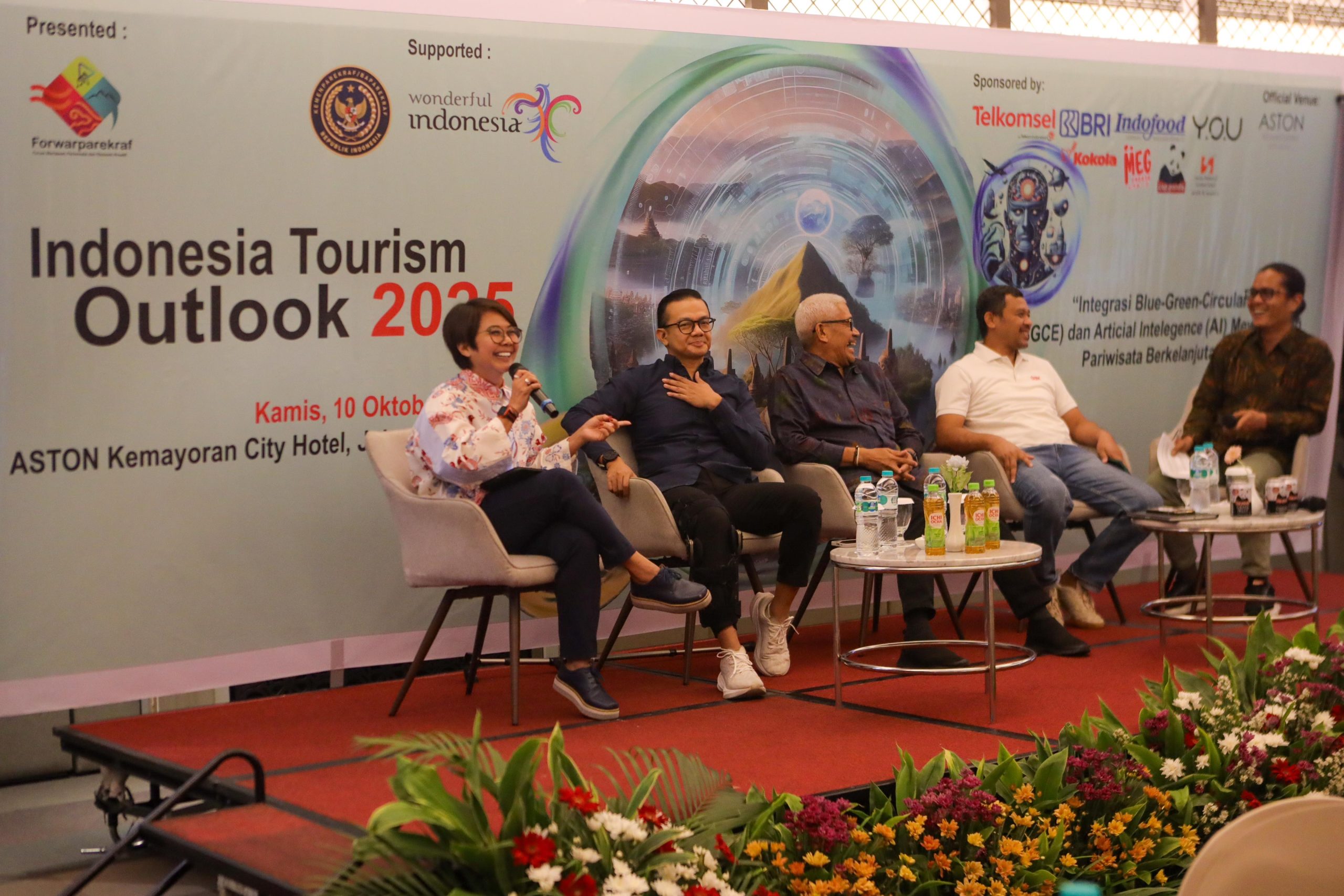 Acara Indonesia Tourism Outlook (ITO) 2025 mengangkat tema “Integrasi Blue-Green-Circular Economy (BGCE) dan Artificial Intelligence (AI) Mewujudkan Pariwisata Berkelanjutan di Indonesia”.