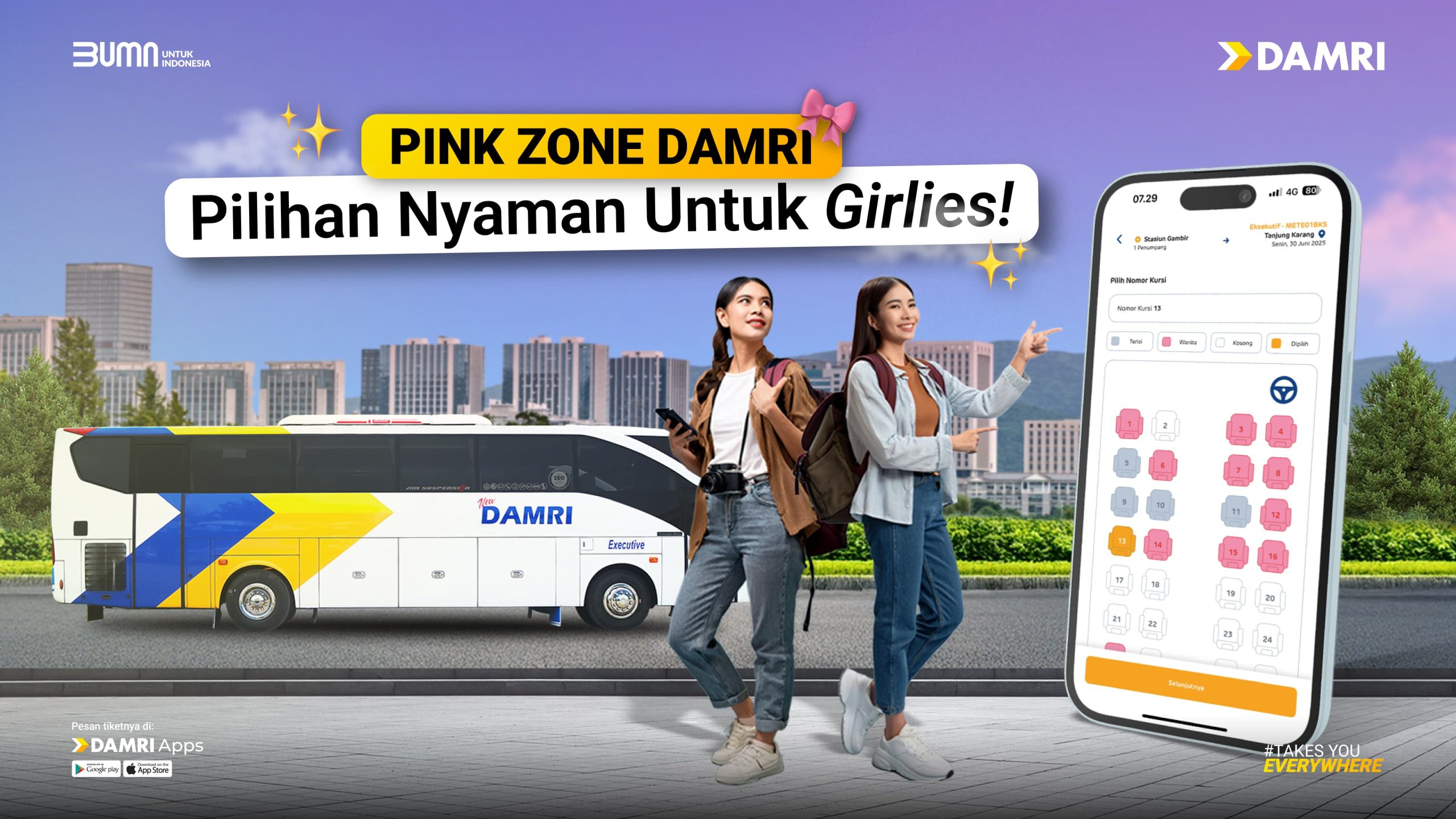 Fitur Pink Zone hanya tersedia bagi pelanggan perempuan yang melakukan pemesanan tiket melalui DAMRI Apps dengan verifikasi NIK, dan tidak berlaku untuk pembelian tiket langsung di loket atau melalui agen perjalanan online (OTA). “DAMRI Apps terus berkomitmen meningkatkan kemudahan dan kualitas layanan dengan berbagai fitur inovatif, termasuk pemesanan tiket online, beragam metode pembayaran digital, serta fitur pemilihan kursi yang kini semakin ramah bagi pelanggan perempuan,” tutup Pohan. (son)