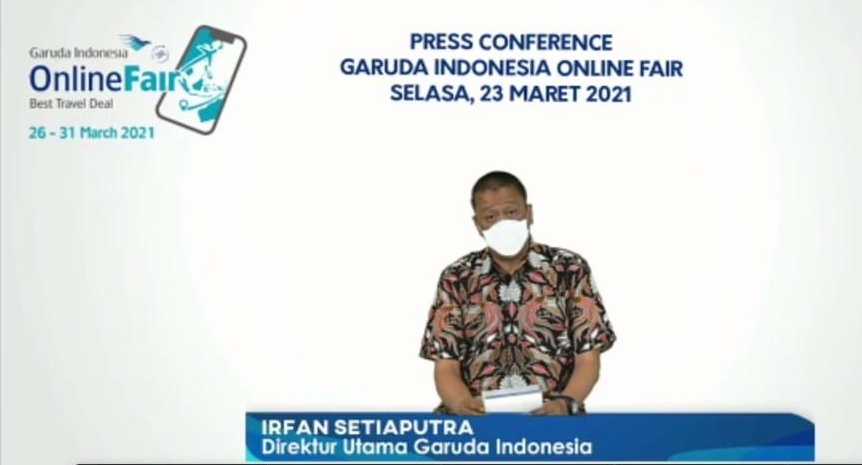 Irfan menambahkan, pelaksanaan online travel fair tersebut juga sejalan dengan komitmen Garuda Indonesia di era kenormalan baru untuk menghadirkan layanan penerbangan sehat serta sebagai upaya perusahaan untuk menghadirkan layanan digital experience yang seamless.