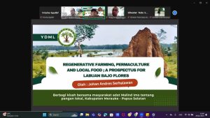Mariana Lusia, Dosen Prodi Agroteknologi Universitas Musamus sekaligus Pegiat Permacultur Pekarangan dan Pemerhati Pangan Lokal dalam pemaparan materinya menjelaskan dua pengertian yang wajib diketahui dalam permaculture yang bisa diterapkan dalam sistem pertanian. Yang pertama adalah permanent agriculture dimana pengelolaan pertanian dan peternakan diterapkan untuk meningkatkan kualitas lahan. Sistem ini memberikan hasil tani, pendapatan ekonomi, dan tetap berkelanjutan untuk masa depan. Yang kedua adalah permanent culture yang konteksnya melestarikan, mendukung, dan menerapkan sistem kolaborasi dengan budaya dan lingkungan setempat serta tumbuh bersama dalam waktu bersamaan, sehingga menjaga nilai-nilai keberlanjutan dan kemasyarakatan.