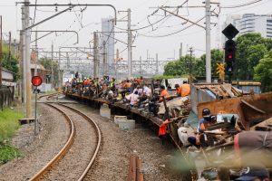 JAKARTA, BISNISJAKARTA.ID – Keselamatan dan kelancaran perjalanan kereta api (KA) menjadi komitmen PT KAI Daop 1 Jakarta dalam memberikan layanan bagi pelanggan. Guna mewujudkan hal tersebut, PT KAI Daop 1 Jakarta melakukan penertiban bangunan liar (bangli) di sekitar jalur KA antara Stasiun Angke hingga Stasiun Kampung Bandan dengan jarak 4,1 kilometer. Penertiban dilakukan dengan menggandeng unsur kewilayahan setempat dan internal KAI sebanyak 200 personil.