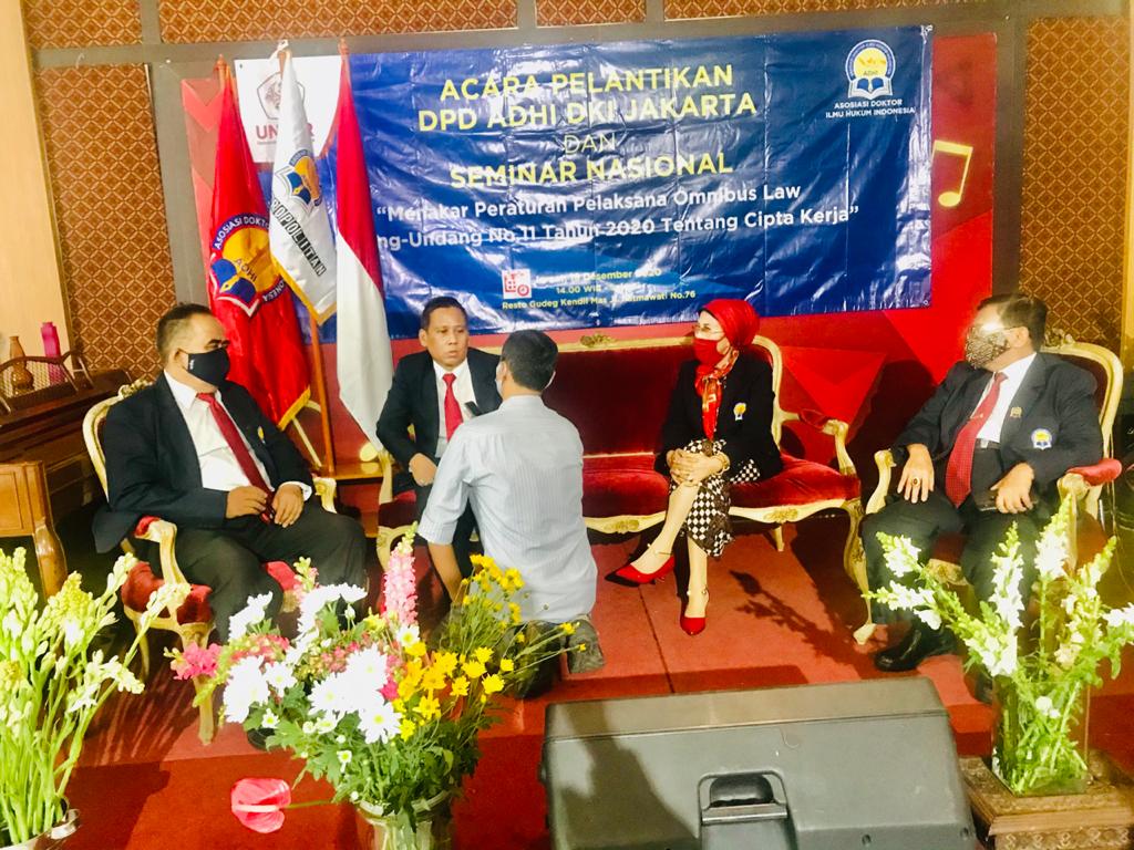 BISNISJAKARTA.ID. JAKARTA –Asosiasi Doktor Ilmu Hukum Indonesia (ADHI) bertekad untuk mengawal pelaksanaan UU Omnibus Law. “ADHI Jakarta bekerjasama dengan Fakultas Hukum Universitas Tarumanegara (Untar) menggelar webinar tentang UU Cipta Kerja karena masih ada pekerjaan rumah lanjutan yang harus dilakukan pemerintah untuk melengkapi dan menyempurnakan konsep Omnibus Law. Puluhan peraturan pelaksana Undang Undang ini harus segera direalisasikan baik berupa Peraturan Pemerintah maupun Peraturan Presiden. Ini bagian kelengkapan,” ujar Ketua DPD ADHI Jakarta Prof. Dr. H. Ahmad Sudiro, S.H., M.H., M.Kn. M.M dalam acara webinar dengan Tema Menakar Peraturan Pelaksana Omnimbus Law, UU No 11 tahun 2020 tentang Cipa Kerja di Jakarta, Jumat (18/12).