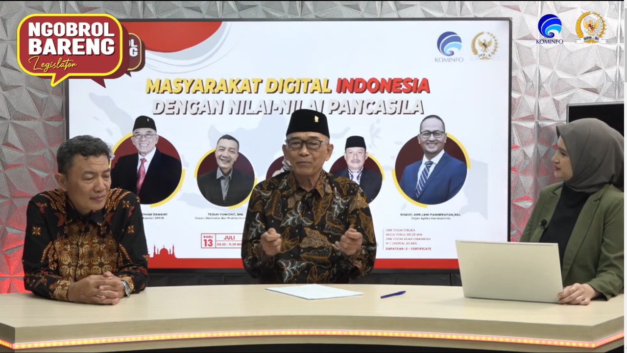 Webinar dengan tema Masyarakat Digital Indonesia dengan Nilai-Nilai Pancasila itu menghadirkan Dirjen Aptika Kemkominfo Semual Abrijani Pengerapan BSc, Anggota Komisi I DPRD Kab. Bantul Joko B. Purnomo dan Dosen, Motivator serta Praktisi Komunikasi Teguh Yuwono.