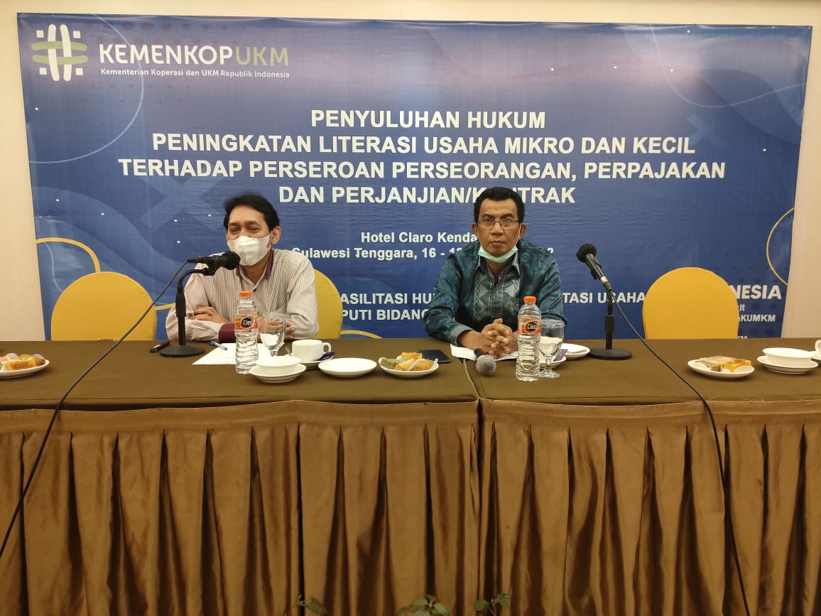 KENDARI, BISNISJAKARTA.ID – Kementerian Koperasi dan UKM terus mendorong para pelaku Usaha Mikro dan Kecil (UMK) di seluruh Indonesia untuk memiliki pemahaman atau literasi hukum terkait dengan perjanjian/kontrak, pajak, hingga perseroan perorangan.