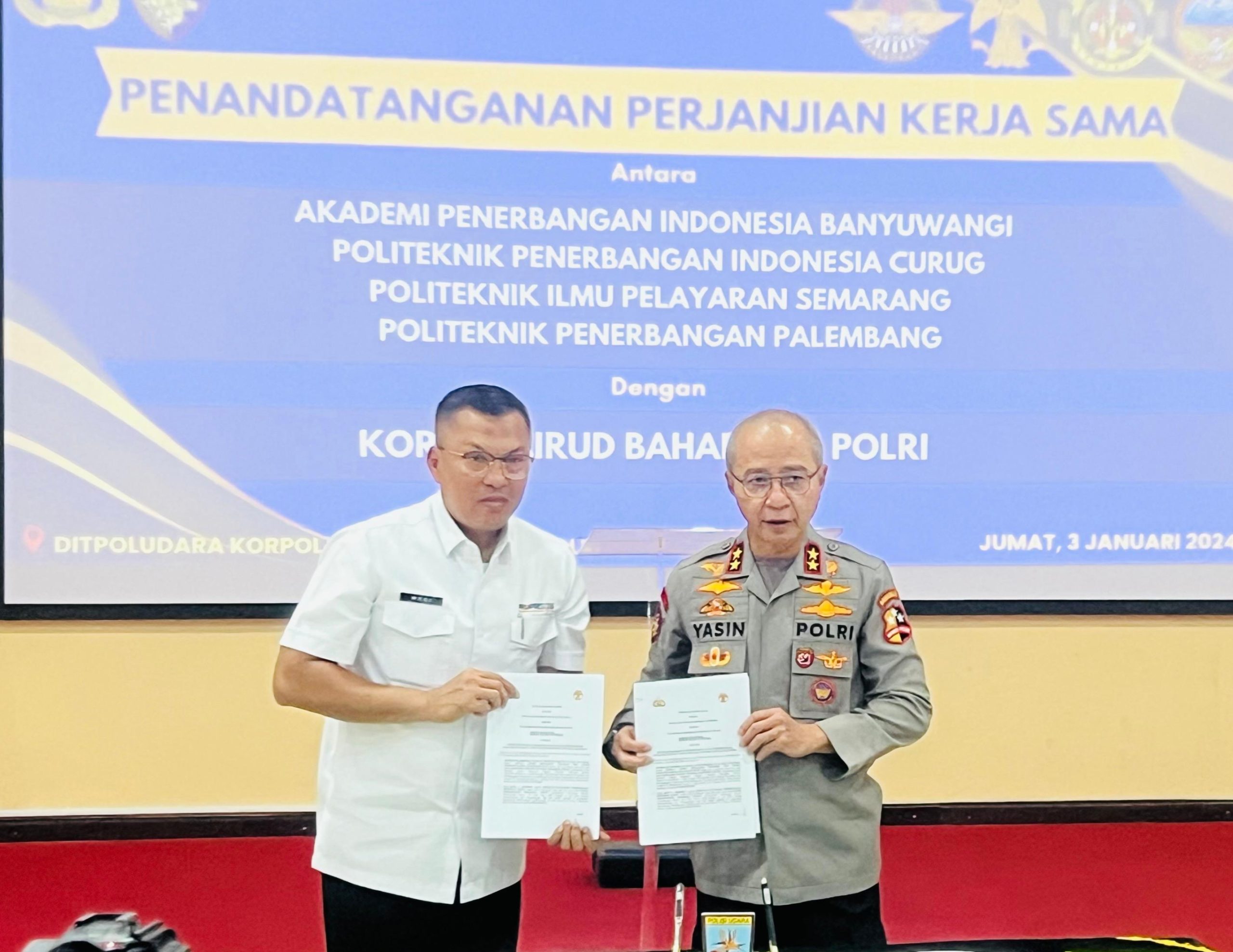 TANGERANG, BISNISJAKARTA.ID – Institusi Pendidikan Vokasi di bawah Kementerian Perhubungan melakukan penandatangan kerjasama Penerbangan bagi awak pesawat udara Kepolisian. Perjanjian kerjasama untuk penyelenggaraan pendidikan dan pelatihan penerbangan bagi awak pesawat udara kepolisian ditandatangani di Tangerang, Junat (3/1).