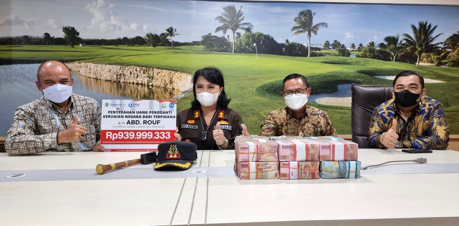 JEPARA, BISNISJAKARTA.ID – Kejaksaan Negeri (Kejari) Jepara menyerahkan pengembalian uang pengganti kerugian keuangan negara sebesar Rp939,9 juta dari Koperasi Serba Usaha (KSU) Permata kepada Lembaga Pengelola Dana Bergulir Koperasi, Usaha Mikro, Kecil, dan Menengah (LPDB-KUMKM). Penyerahan pengembalian uang negara tersebut dilaksanakan di Kantor Kejaksaan Negeri Jepara Jawa Tengah, Rabu (24/11).